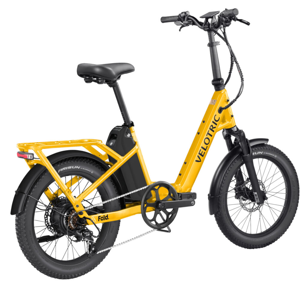 The Velotric Fold’s wide tires and a front suspension fork soak up bumps, giving you a cushioned ride across city cracks or country trails. Plus, the low step-thru frame means hopping on or off is easier and safer. Powered by a 48v, 750w motor up to 20 MPH. Equipped with Hydraulic Disc brakes for safety.